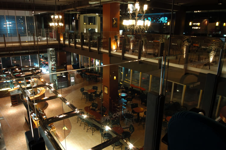 COFFEE智能型咖啡运作系统是咖啡馆的核心。包含了咖啡吧台区、order区及机器设备;客席区的桌椅;体现咖啡馆气氛的壁画、壁炉、灯箱……显示了SPR